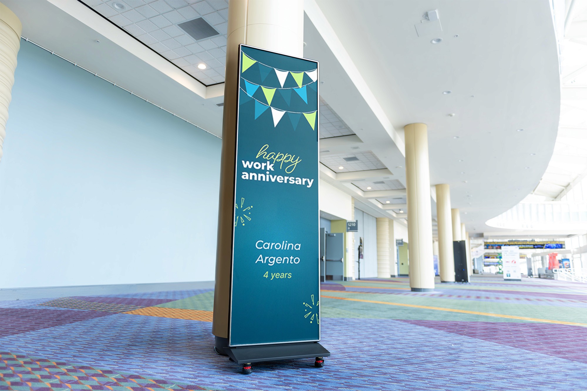 Various sized monitors were located across all the ETP offices globally and maintained through automated Yodecks to display internal highlights and updates.