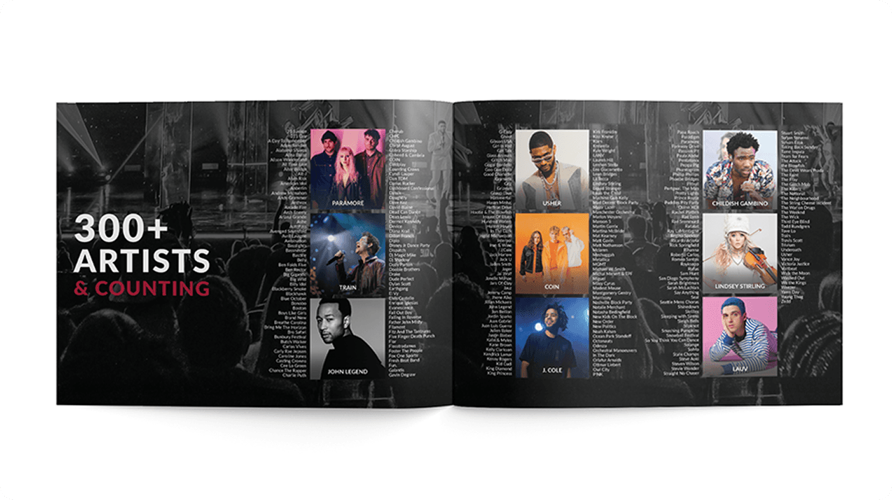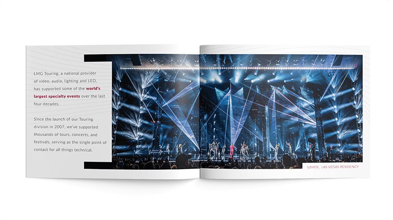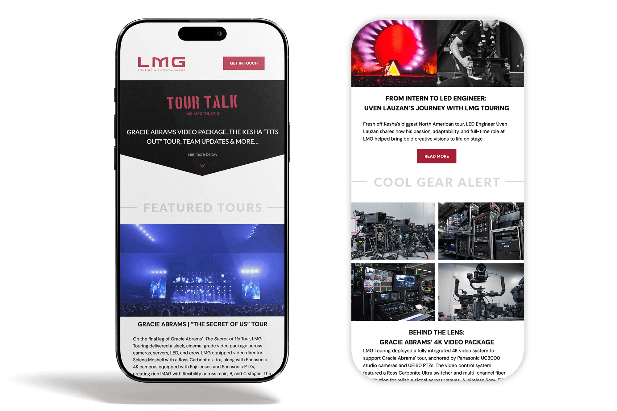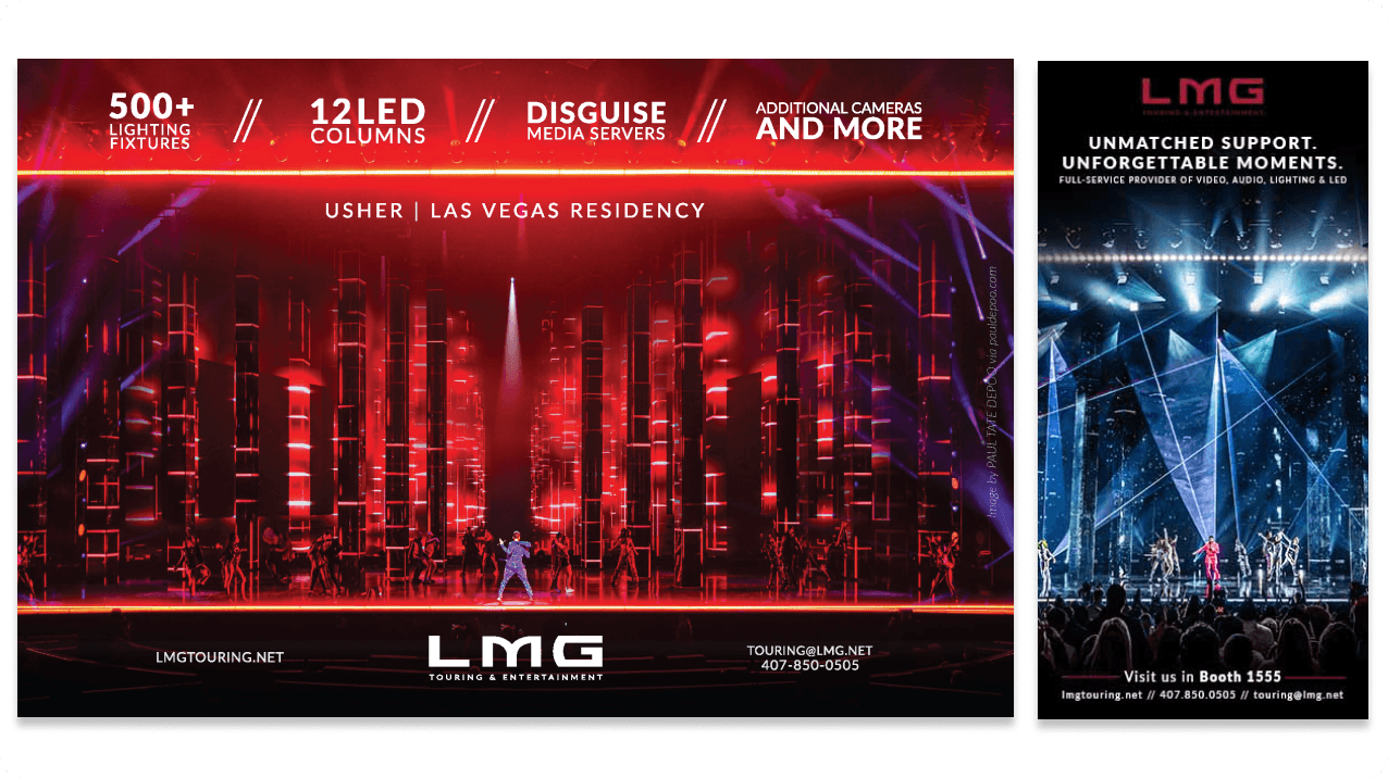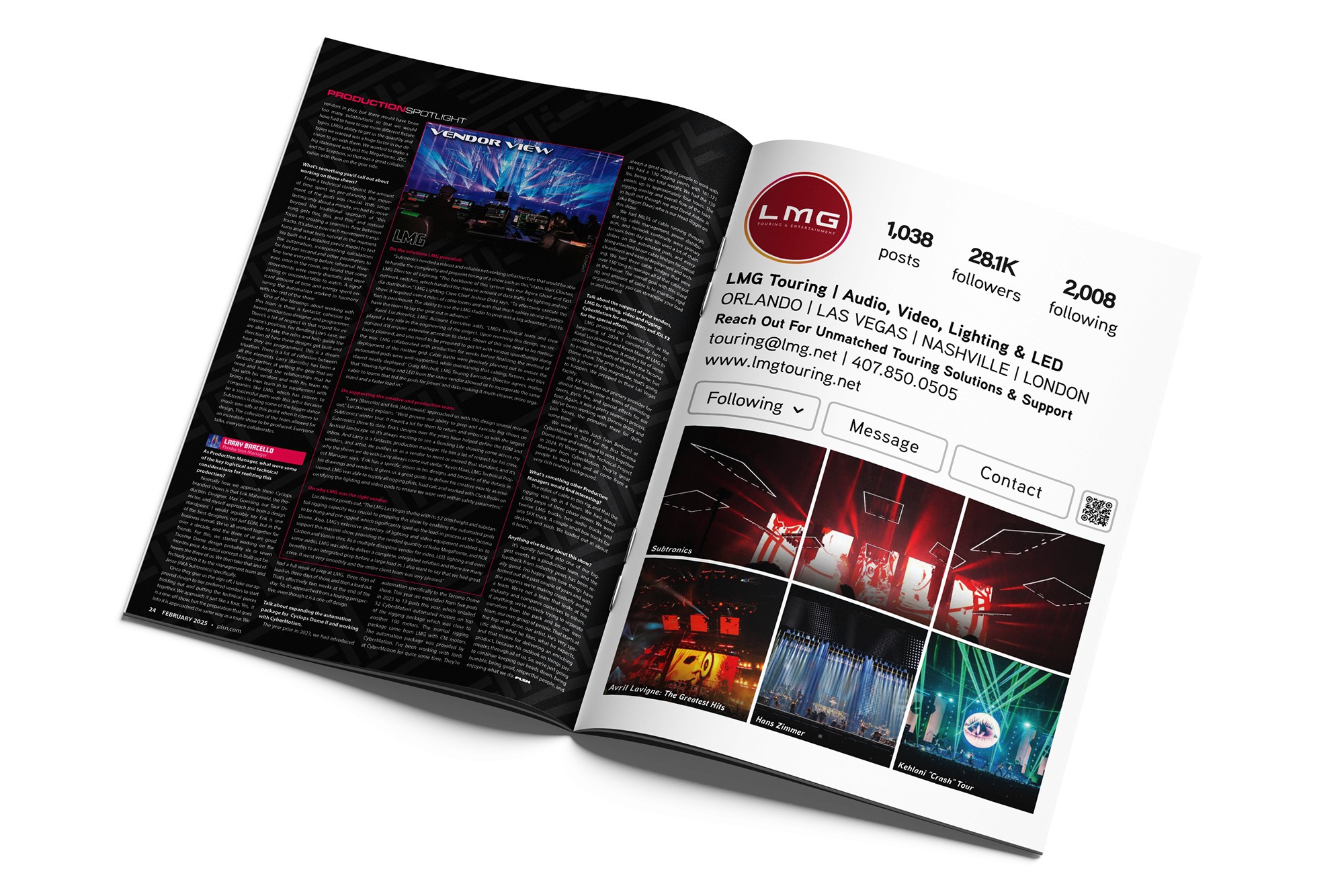 Touring shows would frequently get featured in industry magazines such as PLSN, Live Design, and more. Below are Ad designs for both digital and print publications as well as a 'Tour Talk' newsletter piece - featuring similar works seen in industry publications.